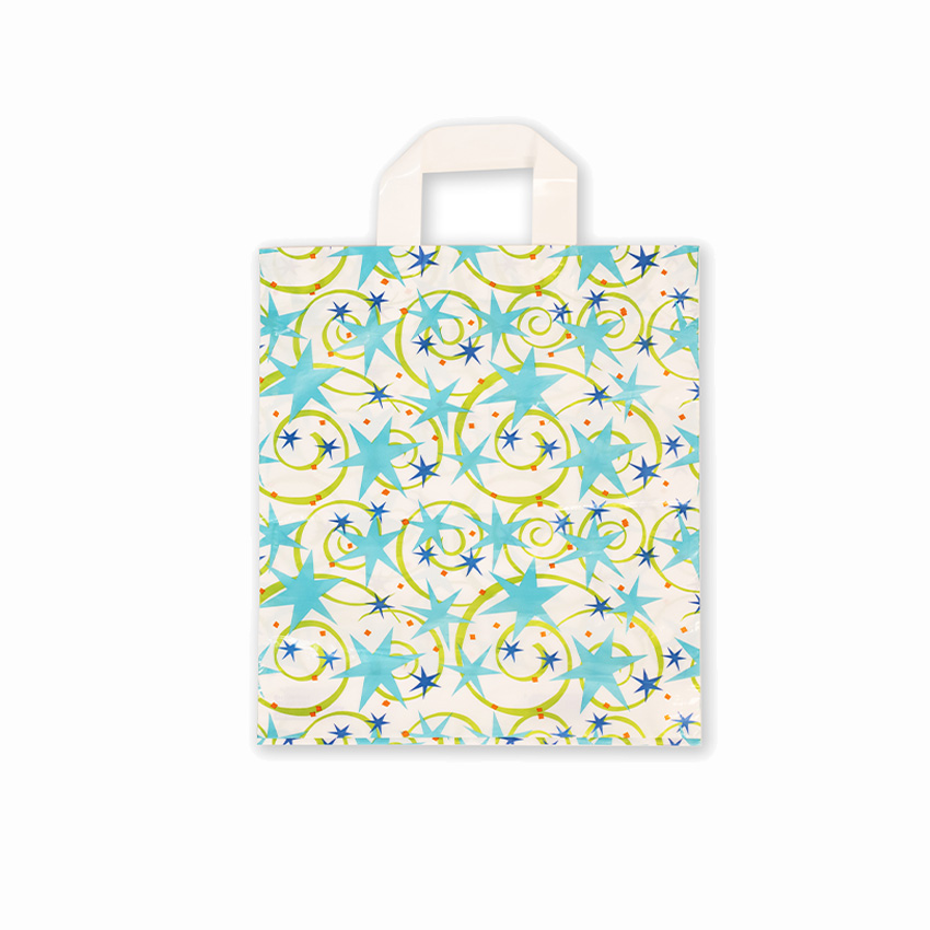 Loop handle plastic bags are durable, reusable, and versatile, featuring reinforced handles for comfortable carrying and reliable strength. Ideal for boutique, retail and grocery use, they are lightweight, and available in various sizes and fully recyclable.