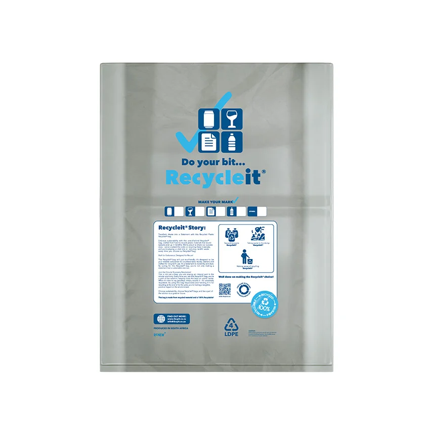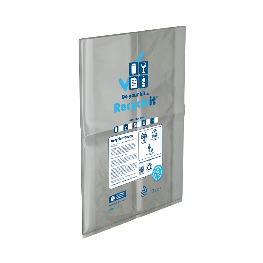 Durable 100 micron printed bags. Made from recycled plastic. Robust, long lasting, designed for multiple uses. 100% Recyclable Separate waste: Cans; Glass; Paper; Plastic or Other. Taking waste to the dump. By opting for this Recycleit® bag, you’re not only making a statement, but a sustainable one too.