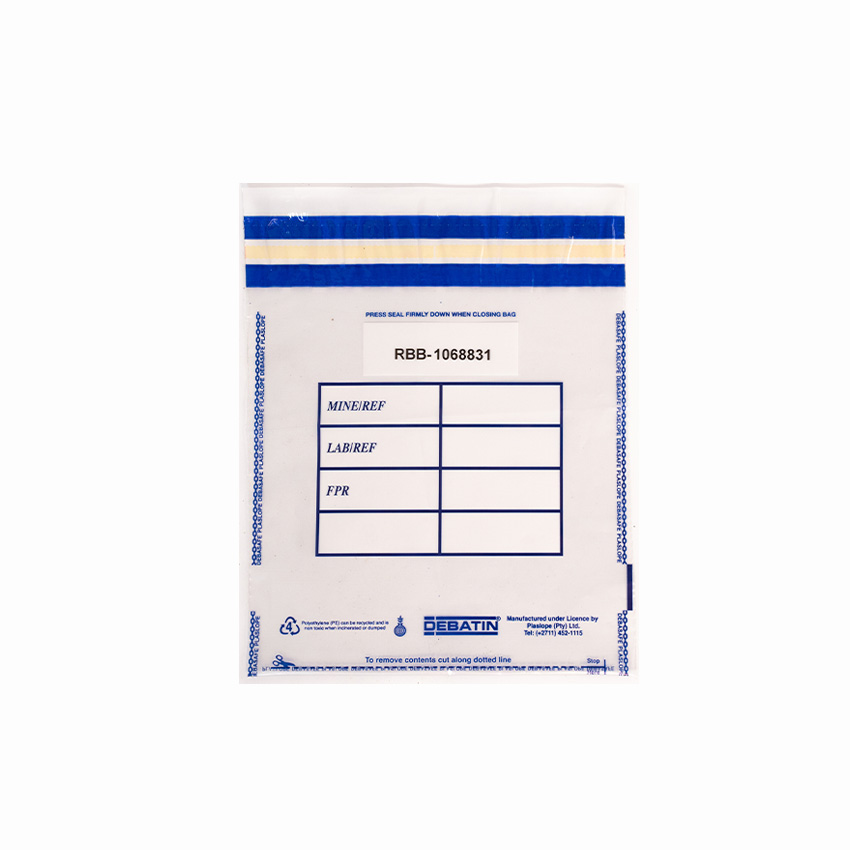 70 Micron, Single use Clear recyclable Polyethylene Mine security bags. Safe & Secure. Unique Barcode Numbering. Seals are not commercially available, ensuring they cannot be removed and replaced. Visible evidence of Tamper, if any attempt is made to gain access to contents – Heat/Freezing/Cutting. Available in 2 Stock sizes.